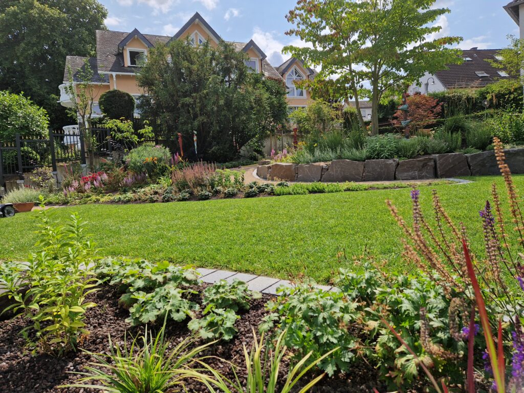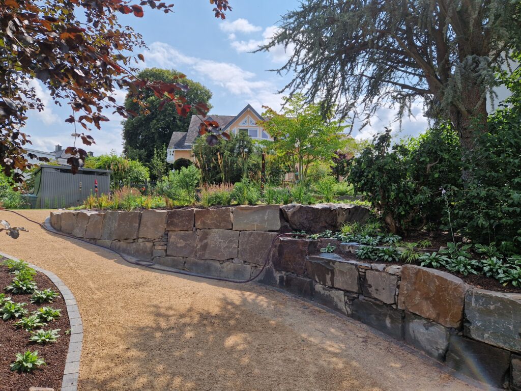 Gestaltung einer Gartenanlage für ein Anwesen/Wohnhaus inkl. Wege, Mauern und Pflanzung.